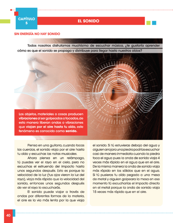 El libro de Ciencias 5 es parte de la serie de Ciencias de primaria. Es un material diseñado para que los alumnos conozcan y descubran la sorprendente creación de Dios; los elementos químicos que componen la materia, el movimiento, la energía, los componentes de los ecosistemas y la asombrosa complejidad del cuerpo humano.