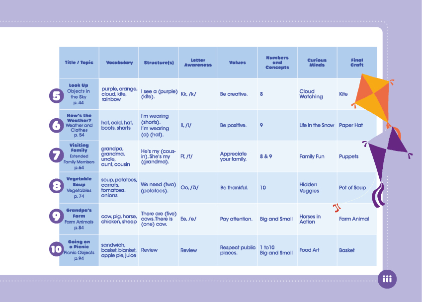 Un libro de enseñanza de inglés como segundo idioma o idioma extranjero para segundo de preescolar. El libro está enfocado en formar las bases de la lectoescritura con historias, vocabulario, valores, canciones y mucho más.