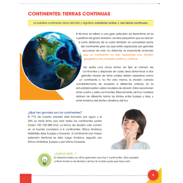 Geografía 5 llevará a los alumnos a explorar la geografía mundial, las características naturales y físicas de la Tierra, las divisiones políticas de los continentes, los distintos ámbitos sociales que existen, las diferentes actividades económicas y los retos que nuestro mundo enfrenta.