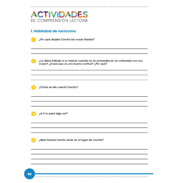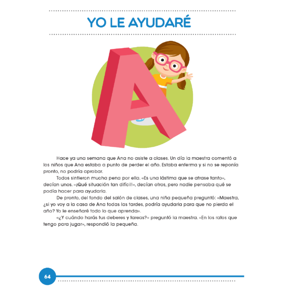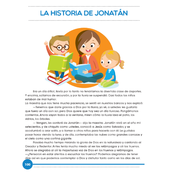 Contiene una serie de historias basadas en principios bíblicos con el objetivo de que los alumnos comiencen a adaptar su manera de pensar a la manera de Jesús. Después de cada lectura, se incluyen preguntas de comprensión lectora que enriquecen la reflexión del alumno sobre cómo aplicar los principios bíblicos en su vida diaria.