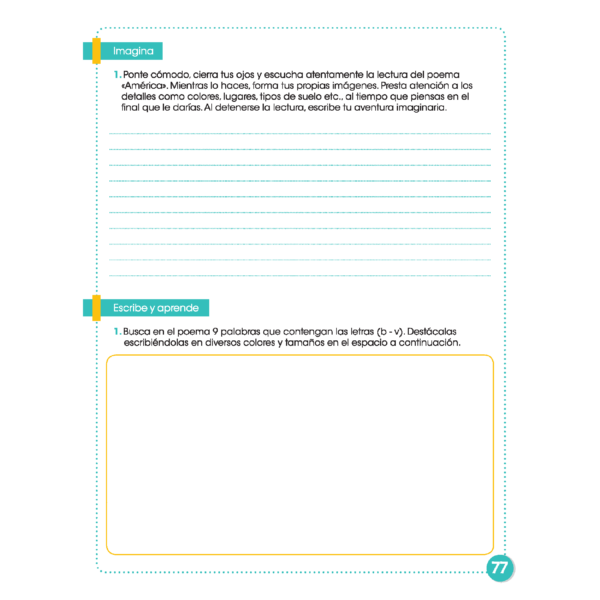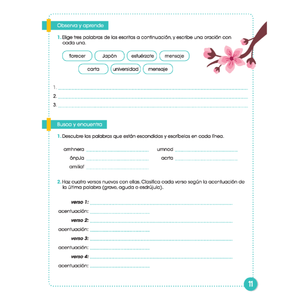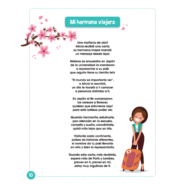 En este primer libro, los estudiantes aprenderán de manera práctica la identificación y uso de: las sílabas,los versos, las estrofas, la rima, la métrica y el ritmo mediante la creación de poesías. Este material introduce a los alumnos al conocimiento de las figuras literarias, a utilizarlas en la escritura de los poemas y la inclusión de la ortografía como una herramienta para expresar correctamente las ideas.